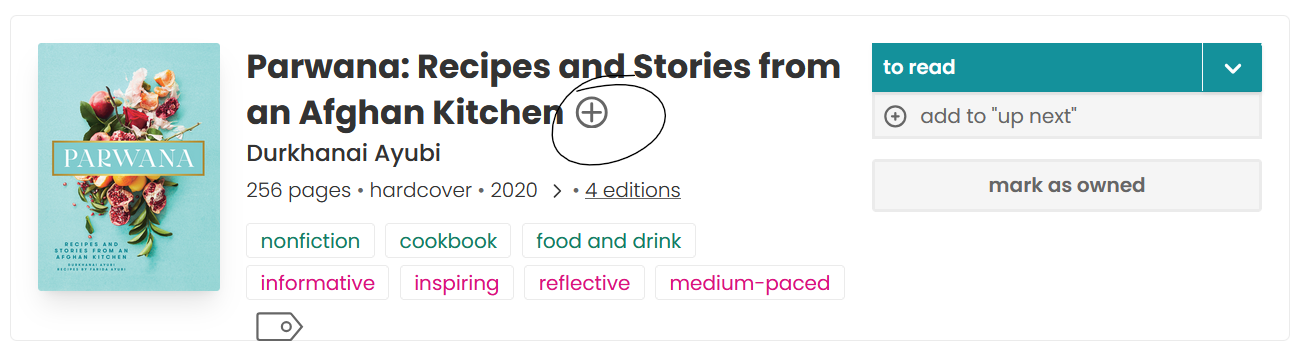3. On the reading challenge prompt page, if you see a book that you also want to use for that prompt, click the + sign here: